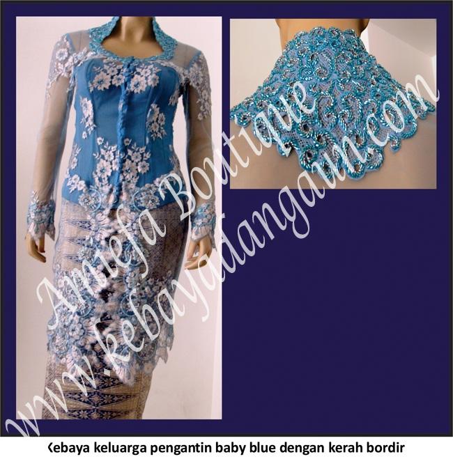 Kebaya keluarga pengantin baby blue dengan kerah bordir