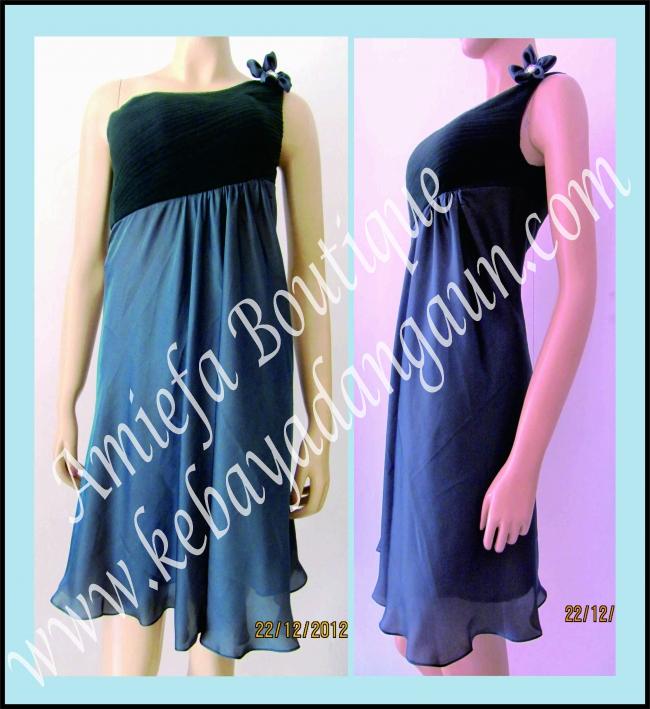 Gaun Asimetris Hitam dengan Kombinasi Opnesel Tulle