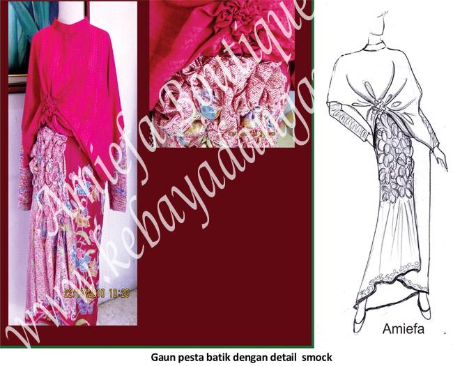 Gaun Pesta Batik detail smoch